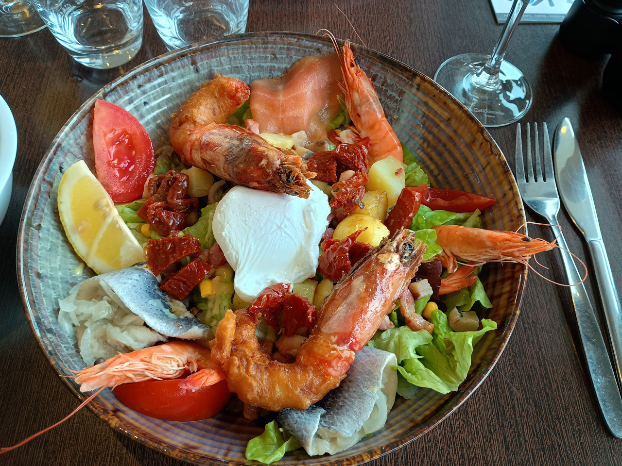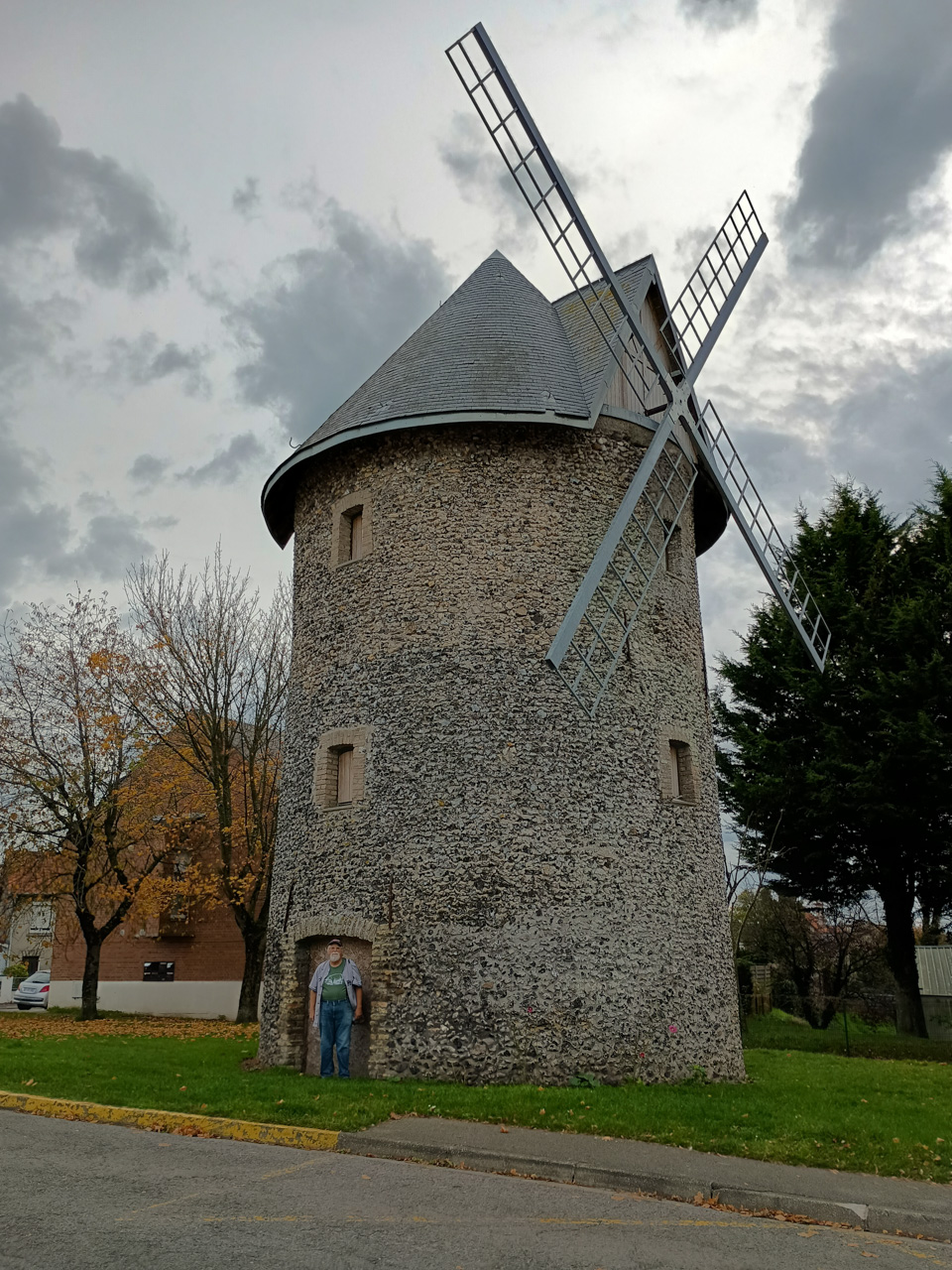 A short train ride from St Pol is Etaples. We took the train out for a look-see and lunch at Planet Ocean. They have a couple cute windmills of the Dutch type and a working harbor at the mercy of the tides again - it was nearly dry during our visit. It is also the home of the Whitstable Oyster - a pic is included - quite a laugh.